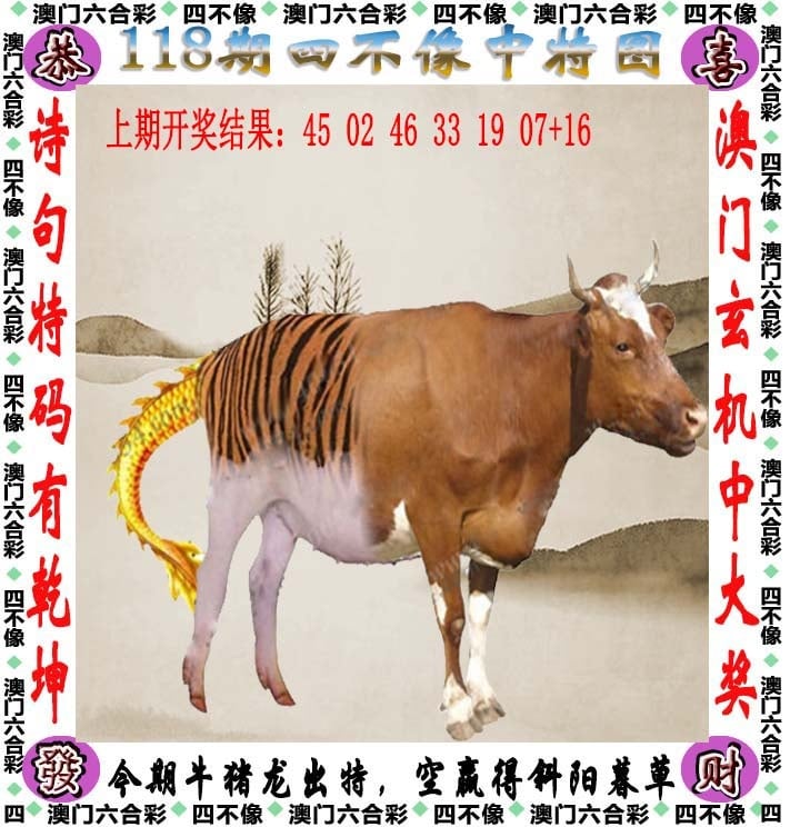 2026-116期正版彩图挂:46;挂牌:目中无人;六肖:牛鼠虎狗兔蛇;火烧:龙